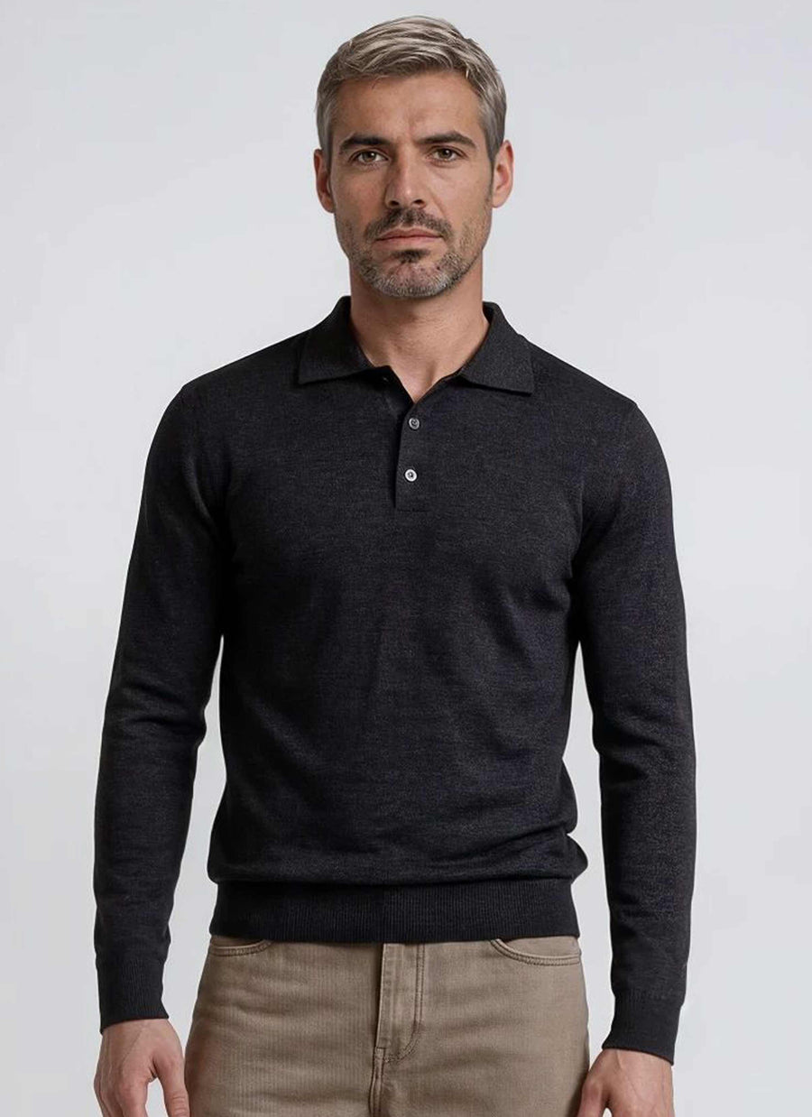The 'Dunalley' is a versatile 3-button placket long sleeve polo knit with milano collar.