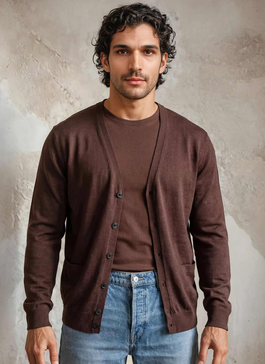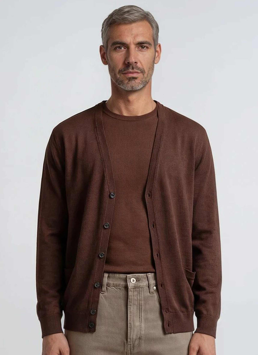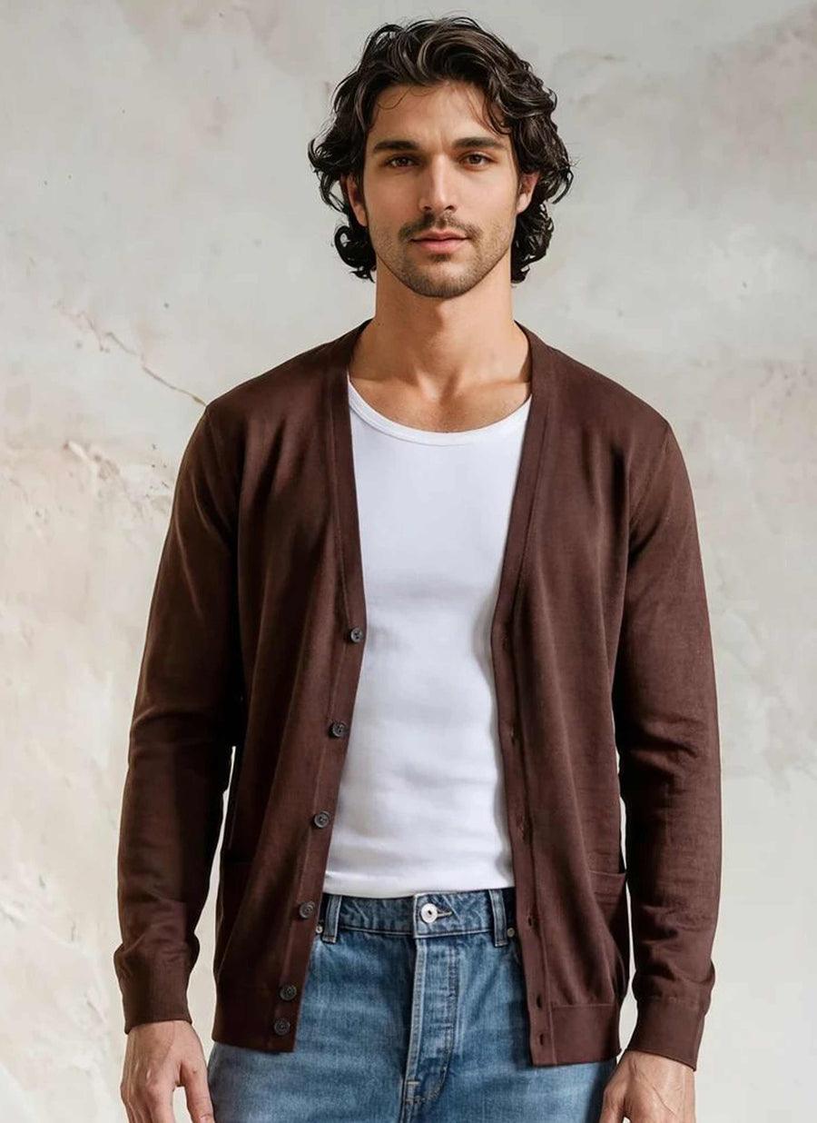 FORCETT 5 BUTTON CARDIGAN - BROWN