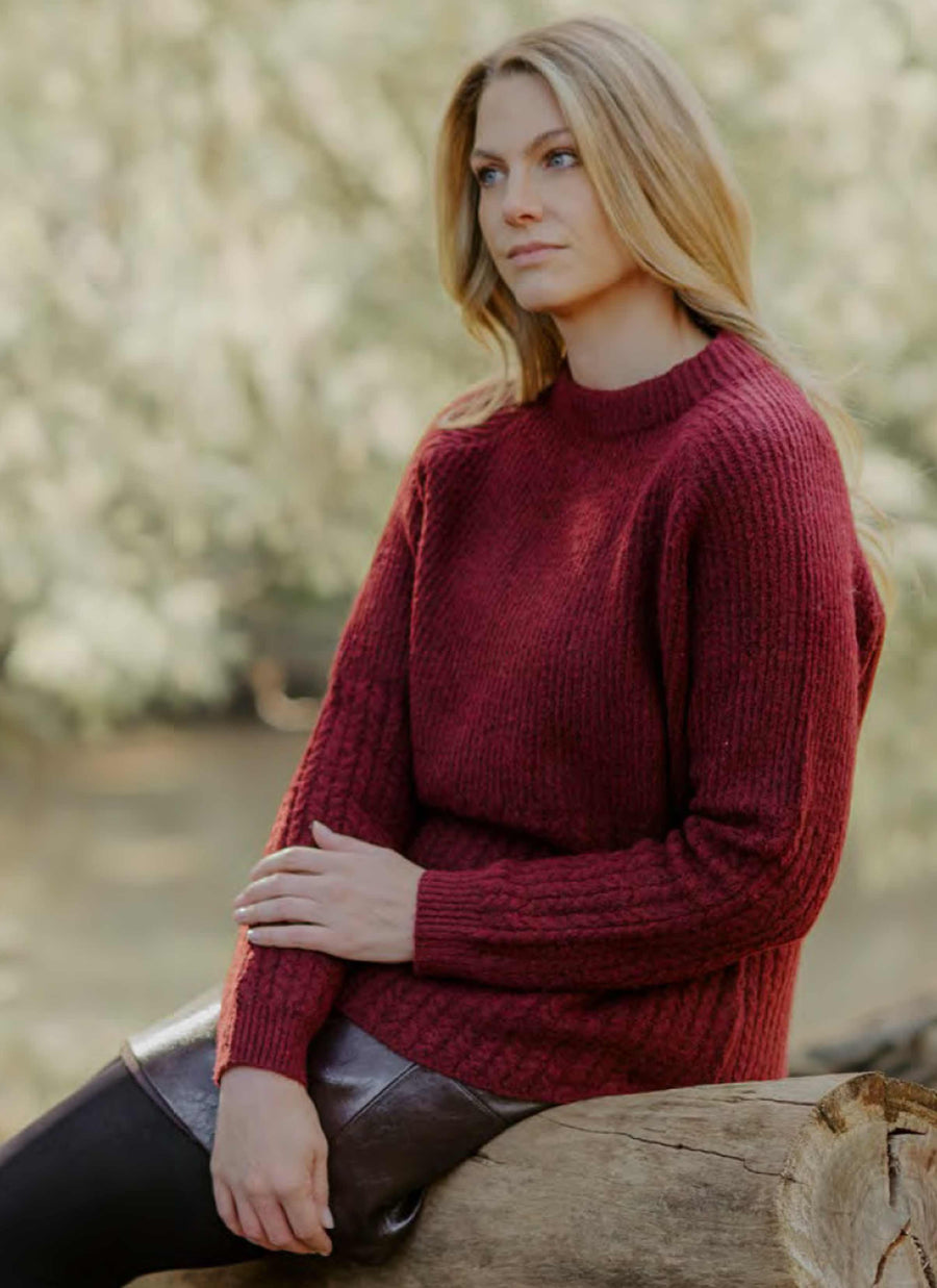 KAYENA FISHERMAN'S RIB & CABLE PULLOVER - SHIRAZ