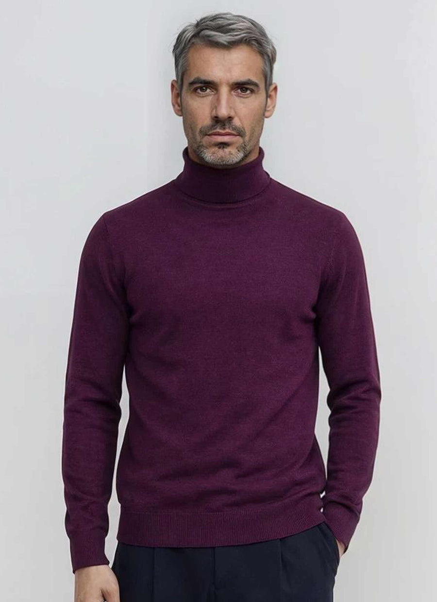 KELSO ROLL NECK PULLOVER - PLUM MARLE
