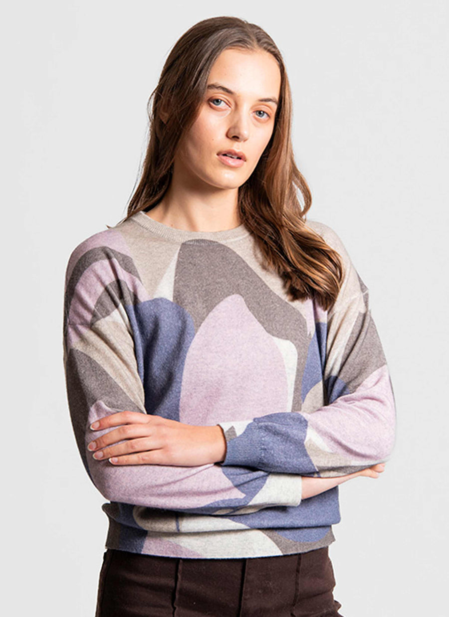 TULLAH GEOMETRIC PATTERN PULLOVER - PINK COMBO